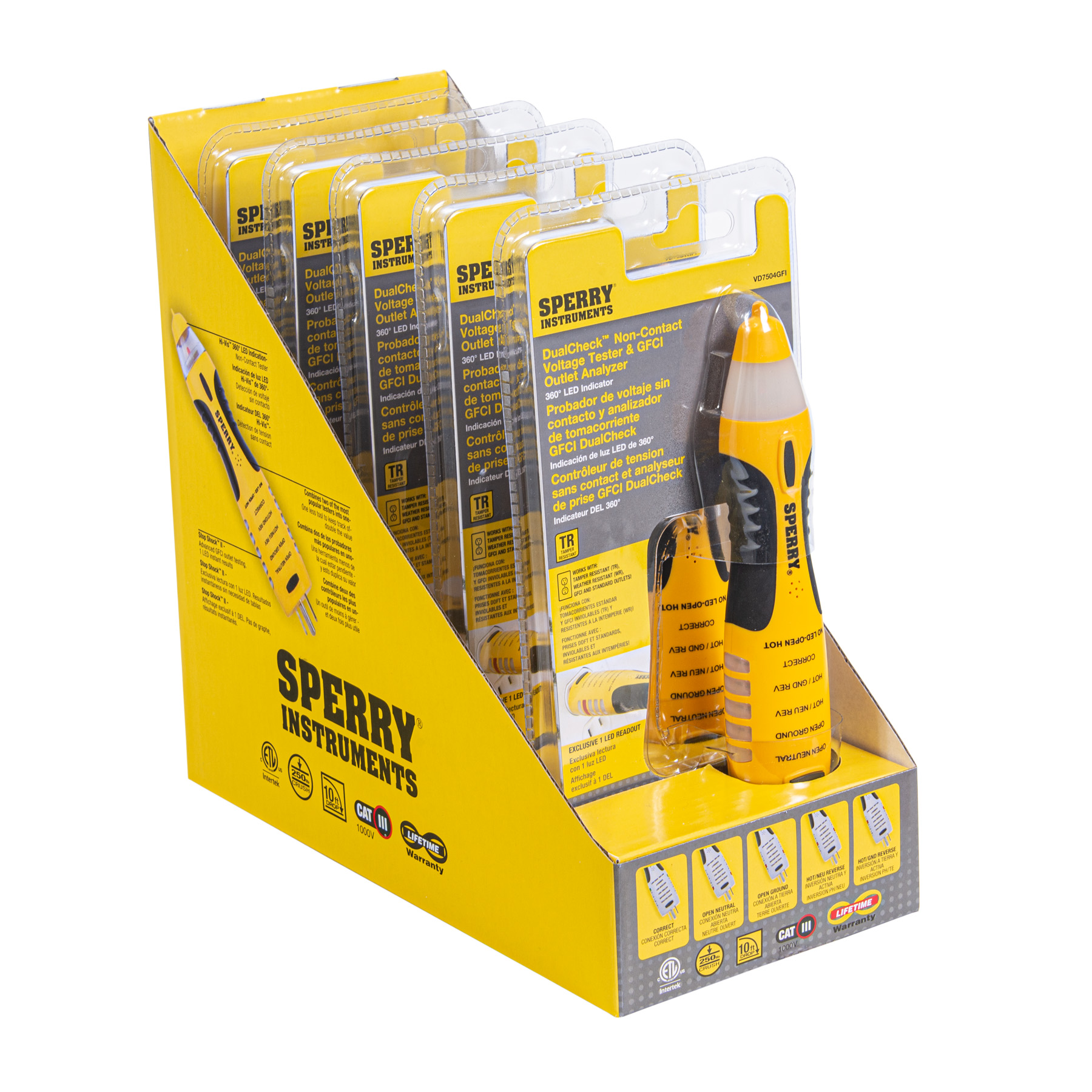 Verifique de manera rápida y conveniente tomas de corriente, fusibles, cables, enchufes, motores, circuitos electrónicos y más con el kit de multímetro digital de bolsillo y comprobador de verificación doble 2 en 1 de Sperry.